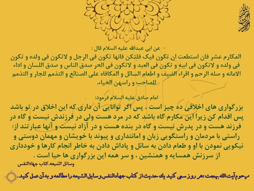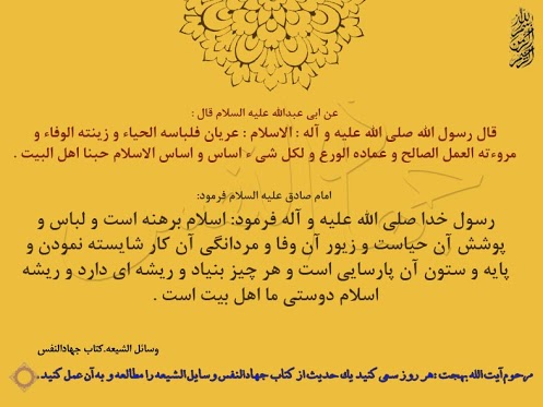 این حدیث رو از سی دی مجموع احادیثی که حوزه ی علمیه تهیه کرده نوشتم بسیار کار زیبایی کردن صفحات زیبای پس زمینه برای رایانه به همراه یک حدیث یا دعا